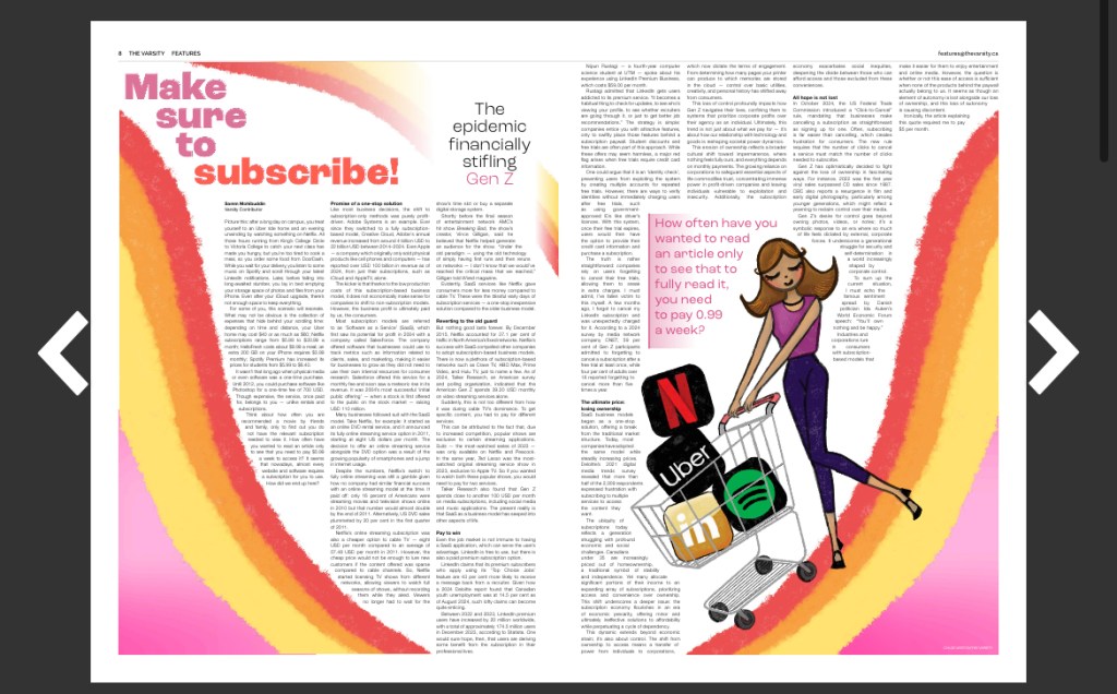 I was an Illustrations Associate for The Varsity, the University of Toronto’s student newspaper, from 2024 to 2025. I am currently serving as the Creative Director for its 146th volume. This archive showcases (most of) the illustrations I’ve created for the paper.