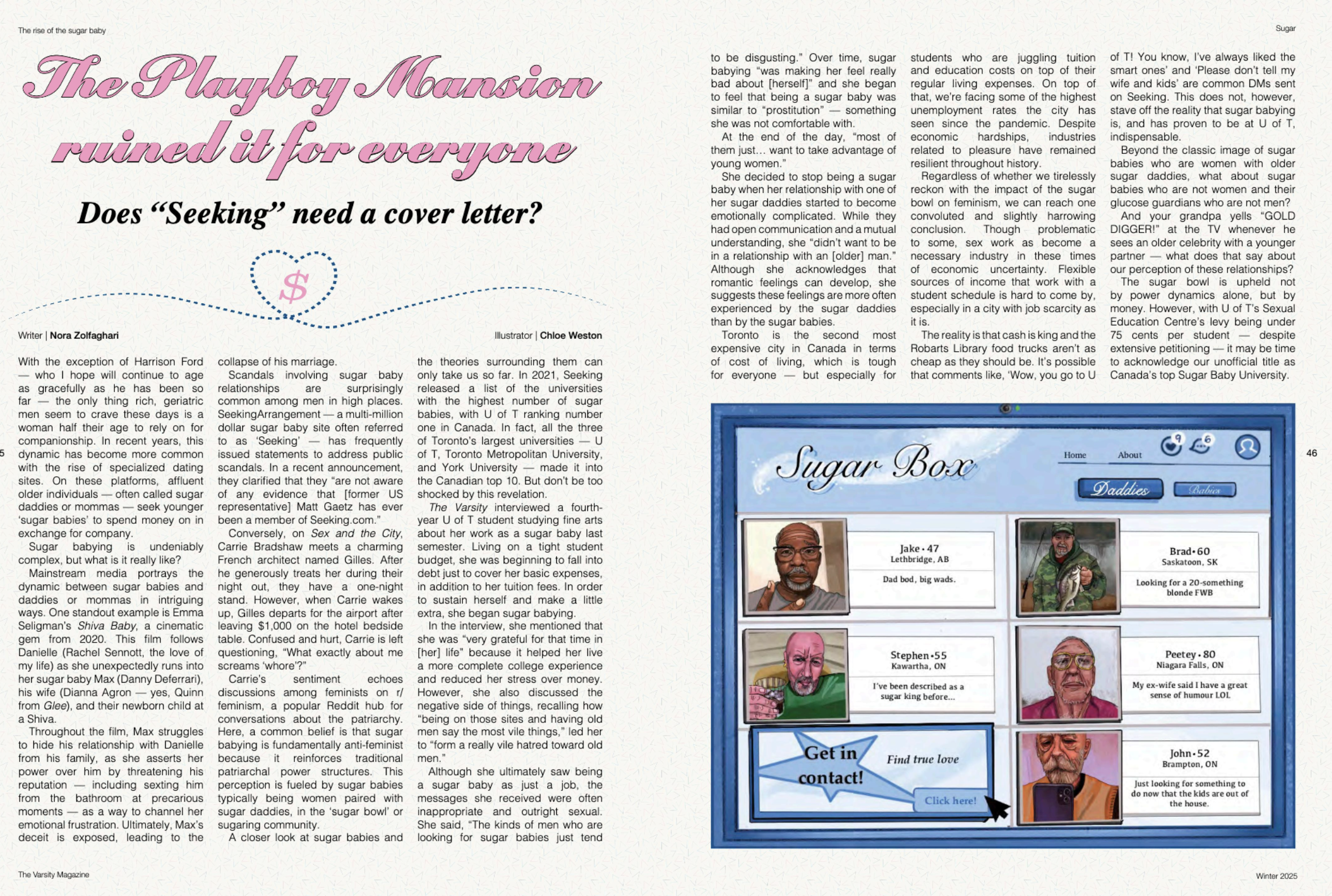 Sugar Daddies for SUGAR magazine : The Playboy Mansion ruined it for everyone pg 51-52.
